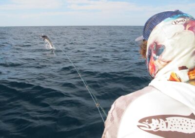 The fishery surrounding Exmouth is so diverse that it is nearly indescribable. One day we would fish the flats and target permit, golden trevally, GTs, and bonefish. The next day we would be offshore on the Indian Ocean chasing marlin and sailfish. Occasionally, on our way to a flat or the blue water we would see birds busting bait fish and we would race over and cast into slashing schools of tuna, mackerel, and trevally. The diversity in Exmouth is very unique and allows us anglers to play so many different and interesting games! Even after two weeks, Dan and I felt like we were barely scratching the surface of the fishery.